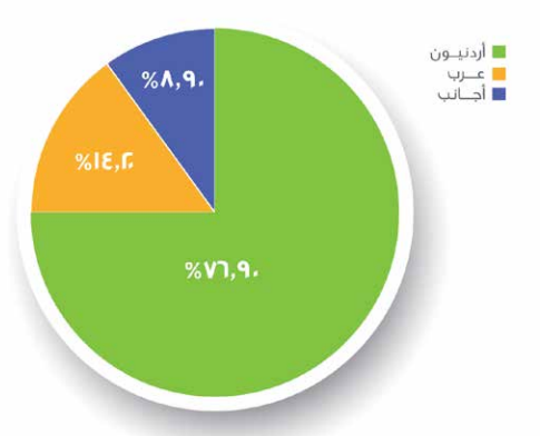 ويبين الجدول والرسم البياني ادناه توزيع المساهمين حسب جنسياتهم وعدد الأسهم التي يملكونها كما بتاريخ 31/12/2025: